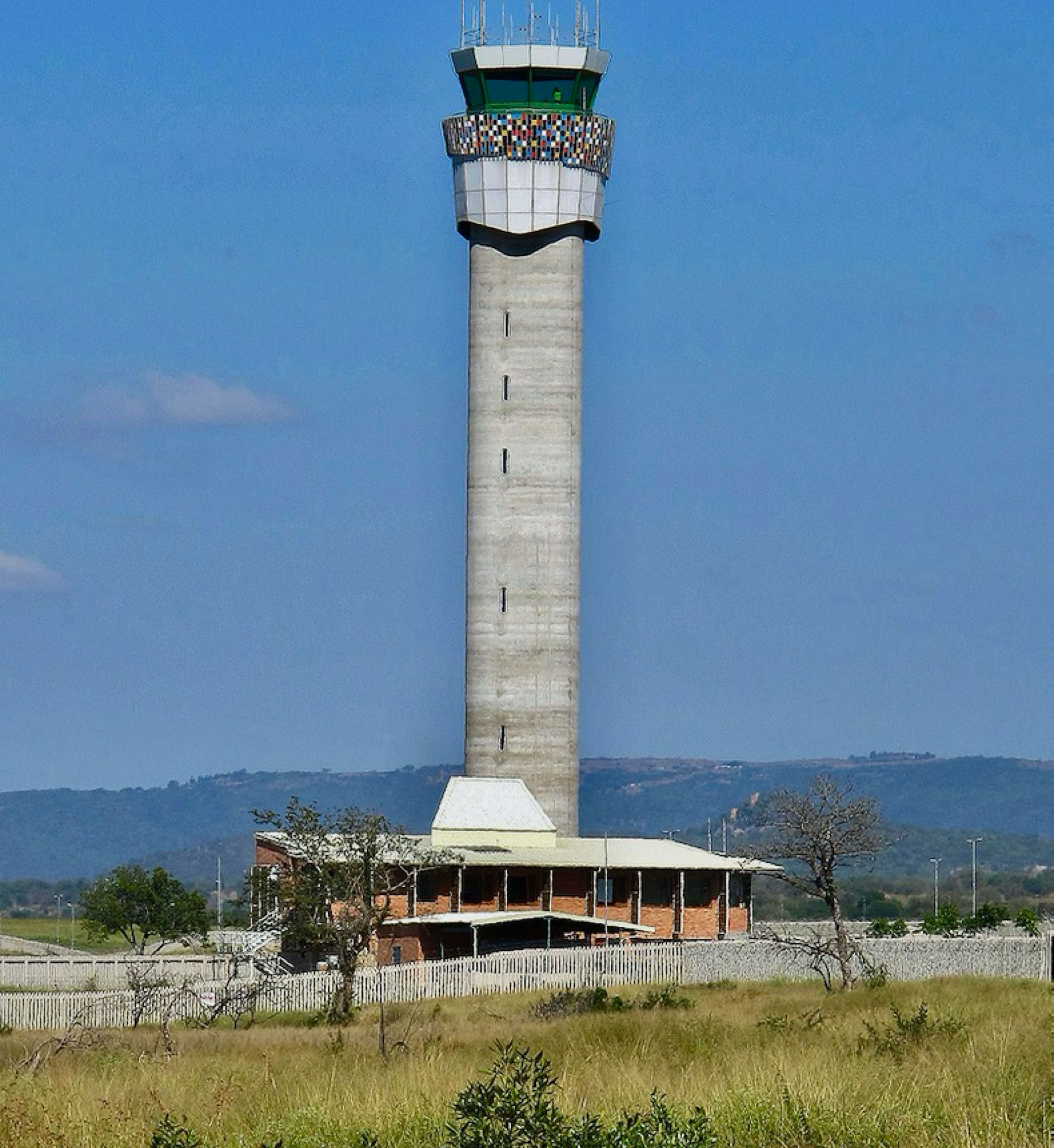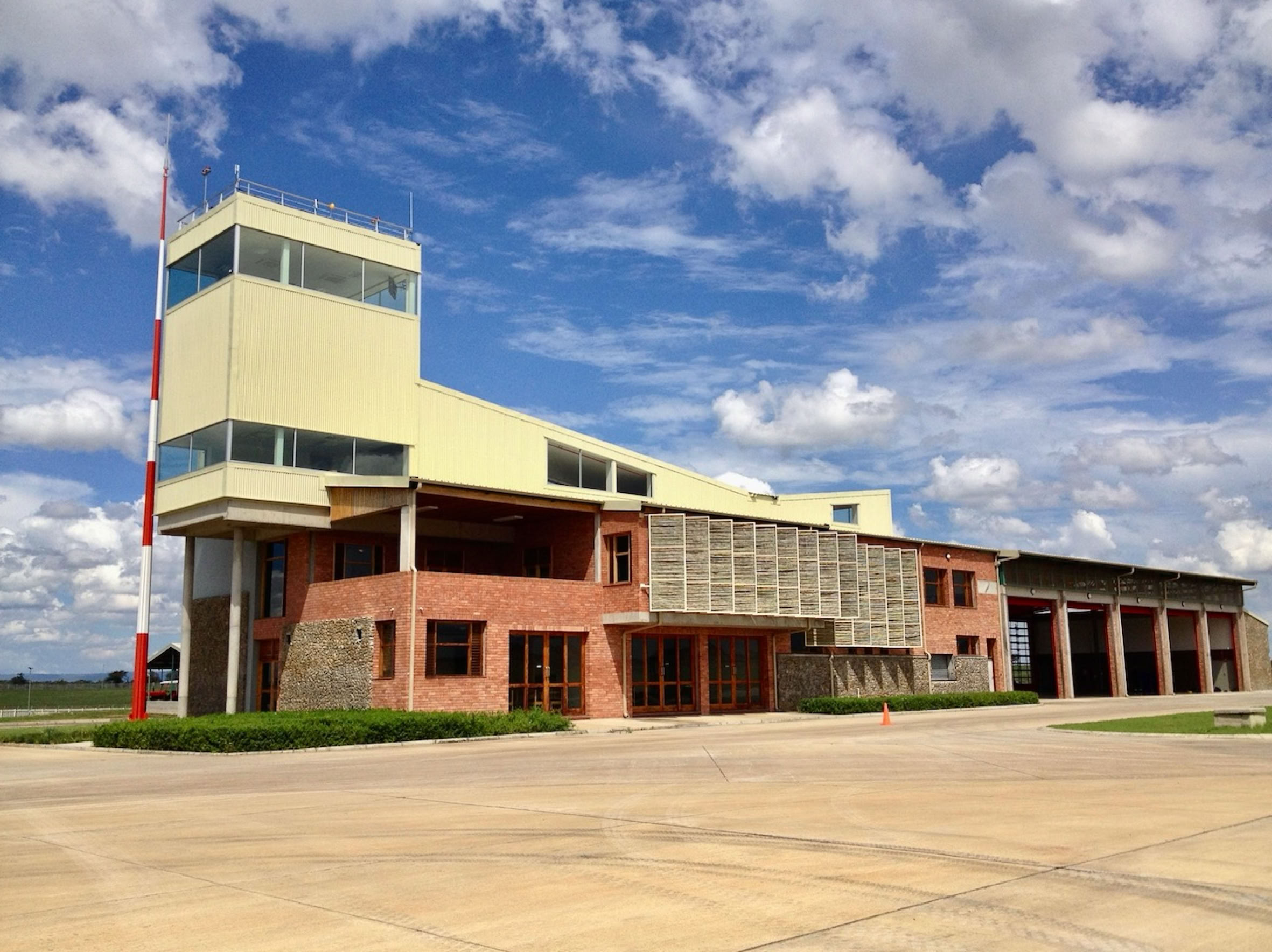 The new airport is located near Mpaka in the Swaziland Lowveld. The ICAO Critical buildings comprise the Air Traffic Control Centre, the Tower, the Rescue and Firefighting facility. The tower housing elevator and stair in a triangular plan, slip-formed reinforced concrete tube topped by a structural steel and aluminium clad canopy. The fire station has a long low sculpted roof with the emergency control office at it’s head.