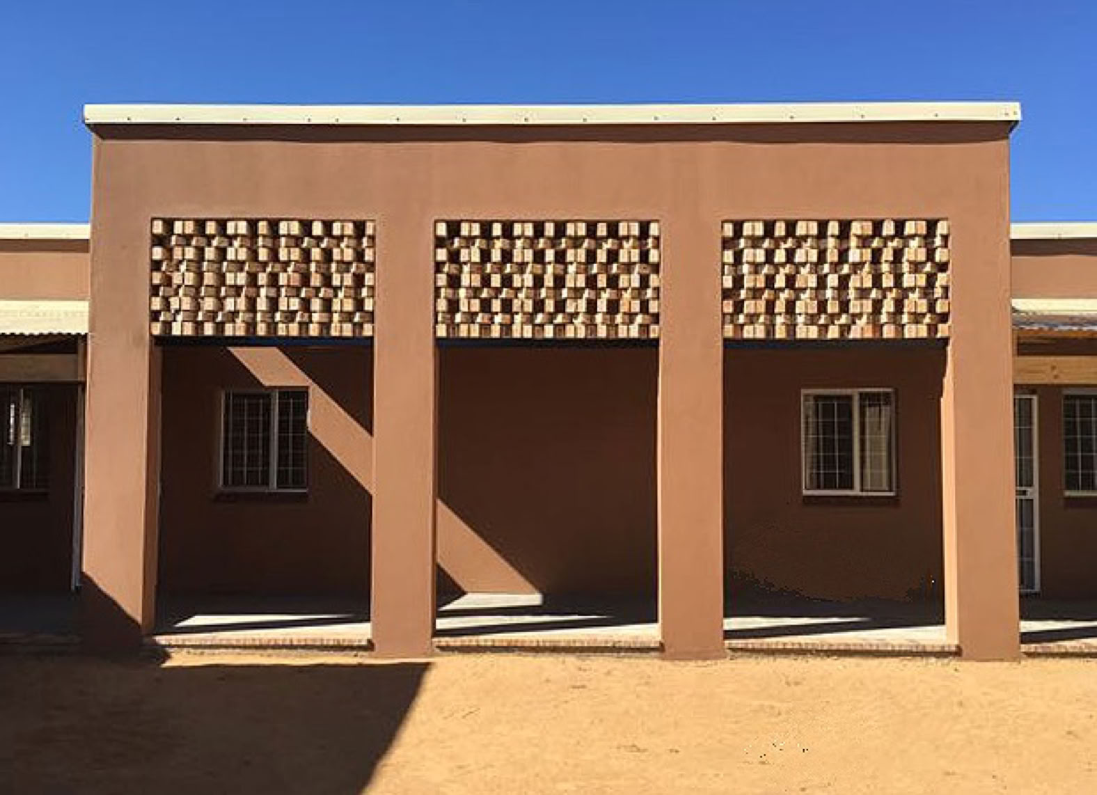 The small complex follows the pattern of homes in the sprawling settlement close to Newcastle, creating a secure courtyard surrounded by verandas. Four blocks and a rondavel accommodate living, four bedrooms suites and worship for parish priests and other members of the local Catholic community.